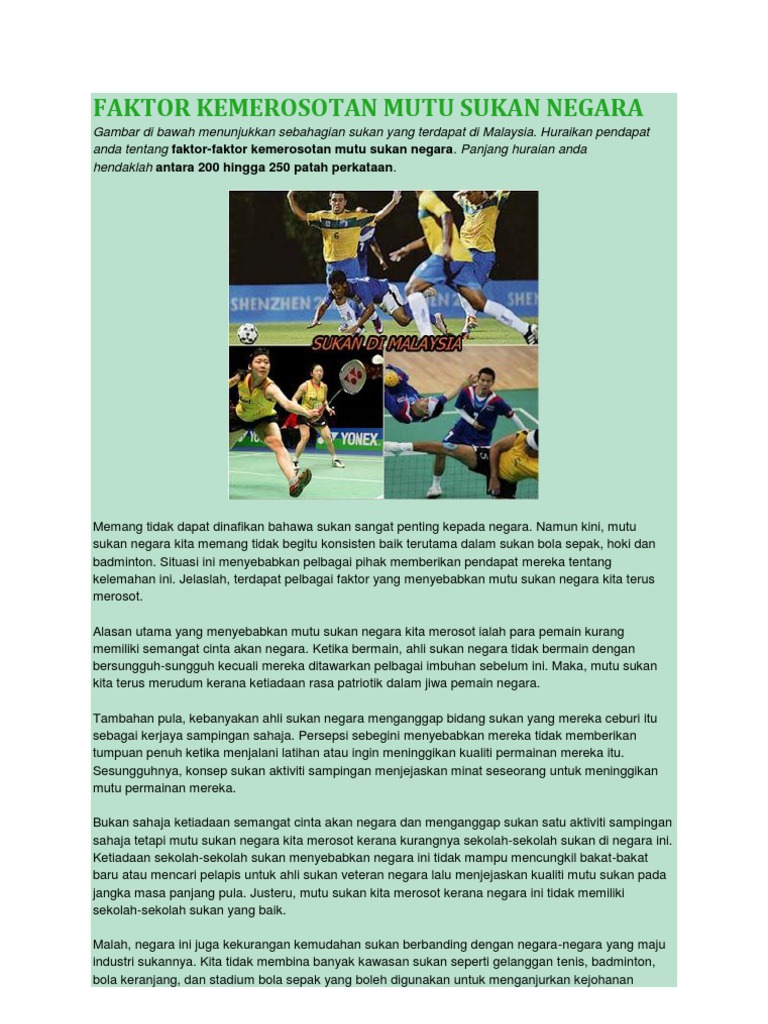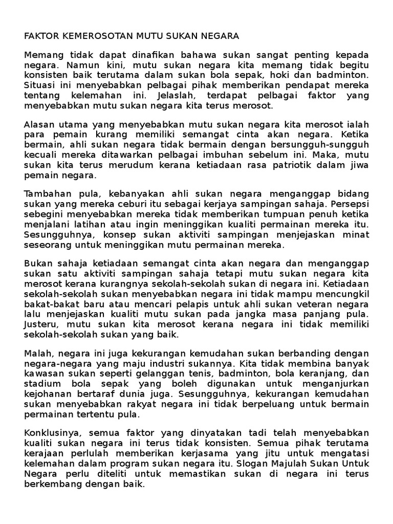 Faktor Kemerosotan Mutu Sukan Negara Pdf