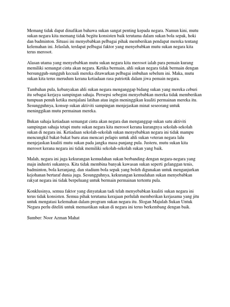 Manfaat Hari Sukan Negara Kepada Pelajar Isi Karangan Spm
