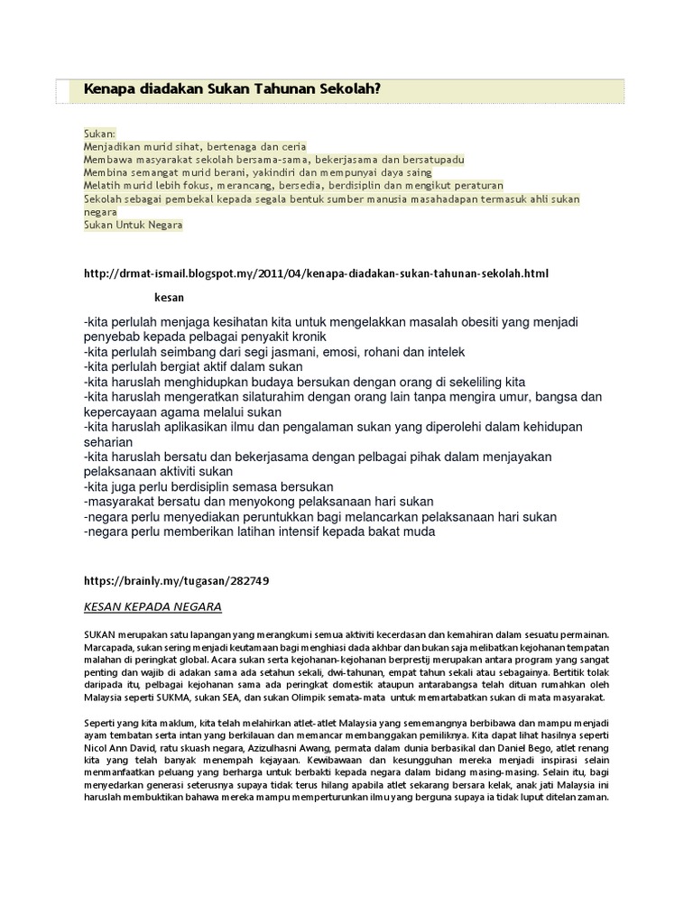 Untuk mengeratkan hubungan yang baik antara ibu bapa danwarga sekolah melalui semangat kesukanan yang tinggi. Click here to get an answer to your question faktor berlakunya hari sukan fathnie fathnie 05162017 History High School answered Faktor berlakunya hari sukan 1 See answer Advertisement Advertisement fathnie is waiting. Faktor Berlakunya Hari Sukan Sekolah Sukan Sekolah Skp3.